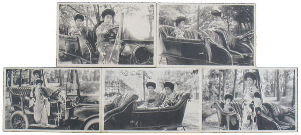 自動車に乗る女性の絵葉書