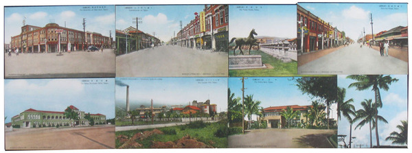 • 著者 絵葉書 原色版 塩堤町連鎖街・山下町大通り・高雄州庁・温浴場他 海南商会発行