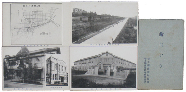 • 著者 絵葉書 モノクロ 浦和町役場/浦和信用組合・浦和高等学校・清ヶ谷新水路並埋立工事・浦和町全図