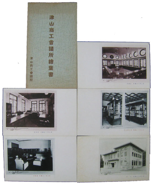 • 著者 絵葉書 少汚 モノクロ 全景・商品陳列所・会議室他 津山商工会議所