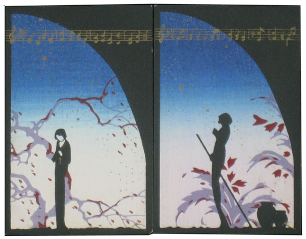 小林かいち木版絵葉書 青い夜