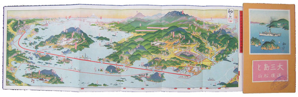鳥瞰図 大三島と道後松山(石崎汽船航路遊覧名所案内図絵)