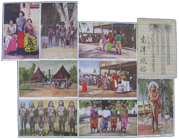 • 著者 絵葉書 セレベス島婦人の舞・チモール人の部落・ニューギニヤ食人種他 平和記念東京博覧会南洋館
