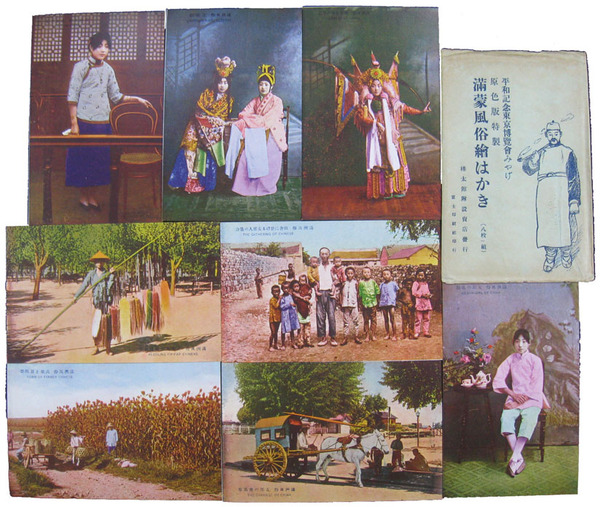 • 著者 絵葉書 満洲風俗支那の客馬車・高粱と百姓姿・良家の娘他 平和記念東京博覧会みやげ 樺太館附設売店発行