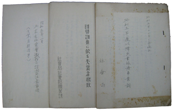 • 著者 孔版14丁 事業一覧表・各団体別事業計画 社会局 国勢調査に依る失業者概数他共