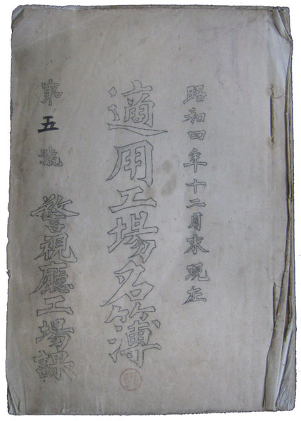 • 著者 孔版590頁 東京府管内の工場名・業種・所在地・代表者・職工数等が管轄警察署別に記載 警視庁工場課