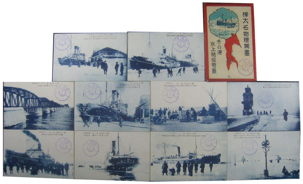 樺太名物絵葉書 冬の港氷上荷役奇景