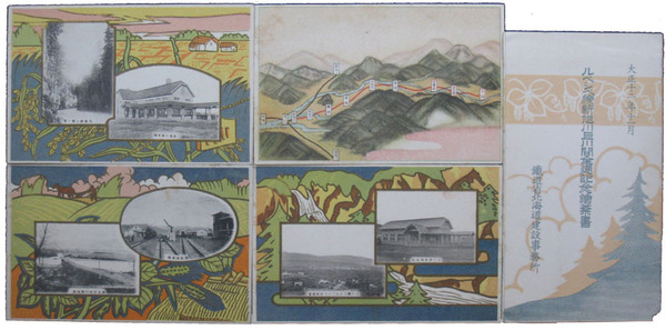 • 著者 絵葉書 新旭川停車場・上川停車場本家・愛別停車場他 周囲デザイン画 鉄道省北海道建設事務所 大12