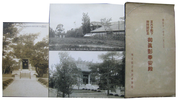 • 著者 絵葉書 モノクロ 奉安殿・校舎 埼玉県立粕壁中学校 昭11