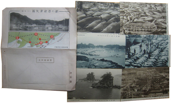 • 著者 絵葉書 油津内港全景・鮪の山・まぐろ船他