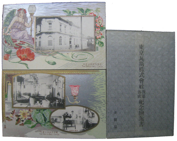 • 著者 絵葉書 周囲デザイン画・エンボス 本社・瓦斯器陳列所・附属理科室 東京瓦斯株式会社 日本葉書会製