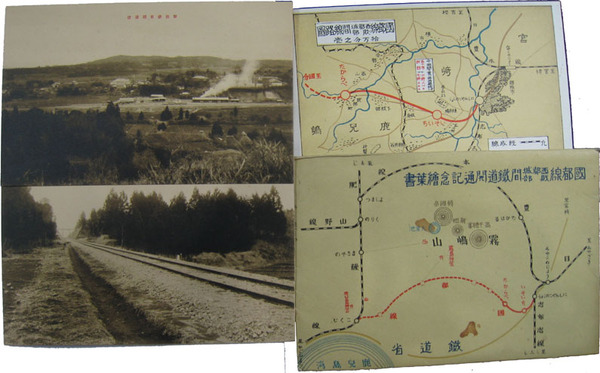 • 著者 絵葉書 路線図・財部停車場遠望・池ノ段跨線人道橋 鉄道省