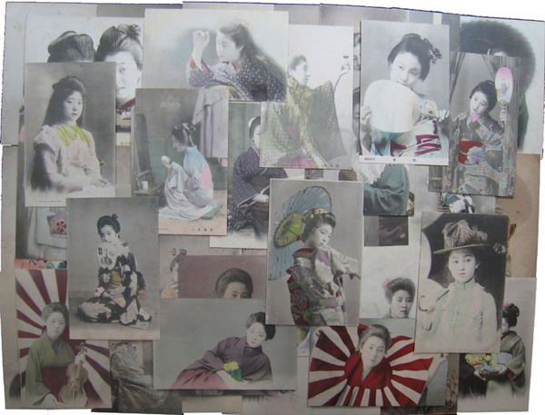 手彩色女性絵葉書