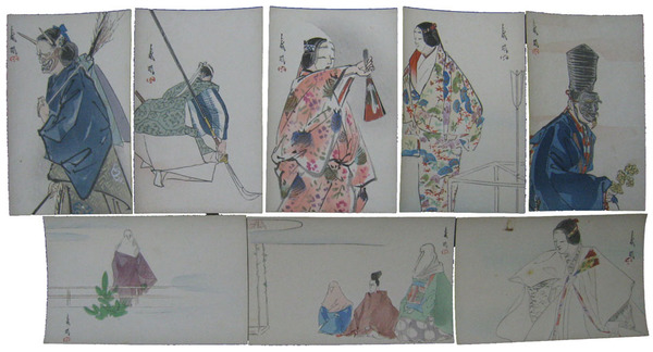 • 著者 絵葉書 少汚 木版 三番三・賀茂・松風・大原御幸・道成寺・鉢木・安達原 松野奏風画 芸艸堂