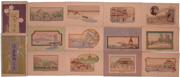 • 著者 絵葉書 少汚・袋補修 上編・下編 各6枚 周囲エンボス 梅田停車場・造幣局・大阪築港・中之島他