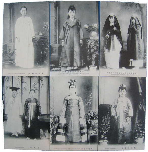 • 著者 絵葉書 処女の服装・正装の官妓・夏衣の婦人他