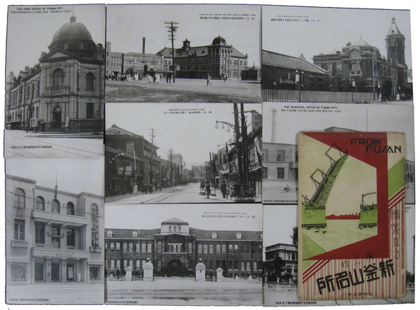 • 著者 絵葉書 モノクロ 慶尚南道庁・釜山府庁・税関・釜山駅他 山崎商店