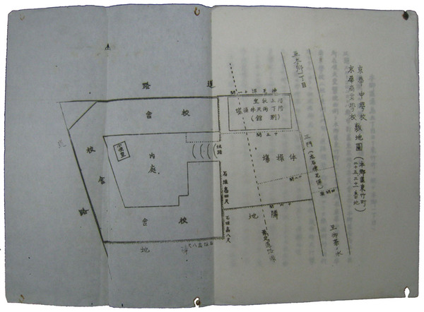 • 著者 表紙欠 4頁 附図 道路拡張による敷地割取に対する抗議 京華中学校・京華商業学校長磯江潤