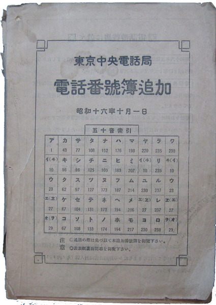 東京中央電話局 電話番号簿追加 昭和16年10月1日