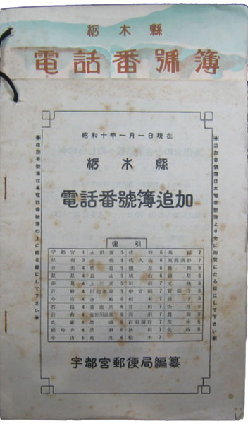 • 著者 昭和九年一月一日電話番号簿追加共 2冊 宇都宮郵便局