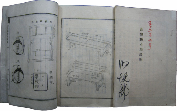 • 著者 印有 学則附録共 2冊 下等小学教則6丁・上等小学教則6丁・附録34丁 備品絵図入