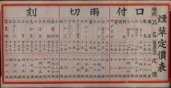 煙草定価表