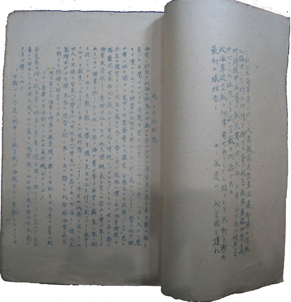 • 著者 藤井斉・小谷進・矢部譲五郎 孔版11丁 台本 海軍少佐龍南生 於航空母艦加賀 「本編は今次上海事変中の我海軍の功績を部外に正解せしむる一助として海軍某方面の依頼により映画用に執筆せしものなり…」