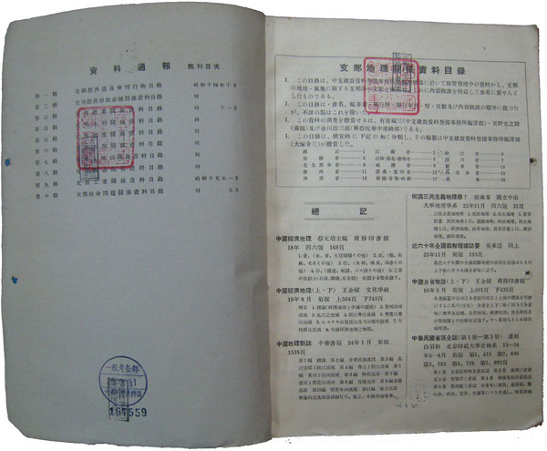 秘 資料通報 支那資料目録
