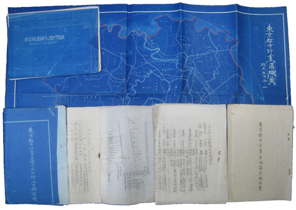 • 著者 東京都市計画区域図67×85・計画区域内区町村人口稠密図69×87(少破)・計画区域内人口増加予想図表・理由書・予定区域調書他