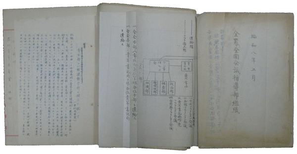 • 著者 情野義秀供述調書 全農全国会議指導部組織 孔版23丁 附図/全農全国会議行動綱領 孔版2丁/青年部の一般運動方針の確立に就いて 孔版2丁/全農青年部行動綱領 内務省箋15頁他