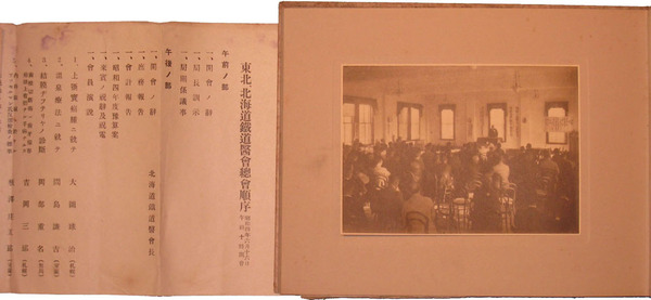 • 著者 写真17枚 新潟市萬代橋・総会会場・地域別参加者集合写真・鉄道側来賓・第二会場行形亭余興他 附総会式次第