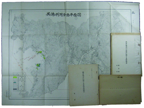 • 著者 旧軍施設の返還に関する陳情書・旧軍施設の産業利用状況・旧軍用港湾施設の転換による港湾の利用について・国連協定に関する陳情書・軍港利用計画平面図他