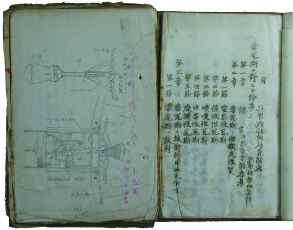 • 著者 孔版 毒瓦斯ト野戦給養勤務ノ研究 41丁・毒瓦斯ニ対スル給養上ノ対策ニ就テ 21丁・昭和六年度化学戦召集将校教育総合演習指導要領 28丁・陸軍航空ノ一班ニ就テ 25丁・兵器軍用品に関する記事抜粋・空中爆撃及防空威力ニ就テ 20丁他