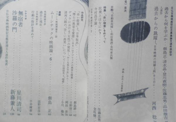 日仏交換映画祭記念募集論文選考座談会・過去から何を学ぶか/飯島正・清水晶・登川直樹・佐藤忠男・品田雄吉 特集/「赤い殺意」をめぐって 民衆とはなにか?/佐藤忠男 今村昌平論/金坂健二 日本の映画作家2・今村昌平/長部日出雄 シナリオ 無宿者/星川清司 沙羅の門/新藤兼人 他