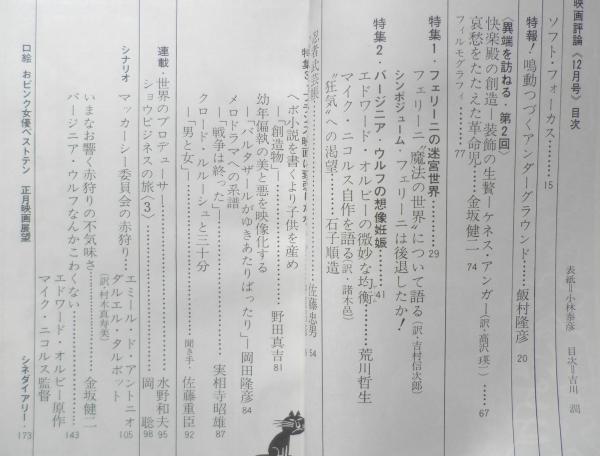 特報!鳴動つづくアンダーグラウンド/飯村隆彦 特集1/フェリーニの迷宮世界 シンポジューム/フェリーニは後退したか? 特集3/ヴァージニア・ウルフの想像妊娠 特集3/フランス映画は衰退したか シナリオ マッカーシー委員会の赤狩り/エミール・ド・アントニオ、ダルエル・タルボット ヴァージニア・ウルフなんかこわくない/エドワード・オルビー、マイク・ニコルス 他