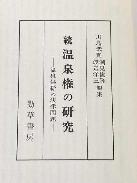 温泉権の研究〈続〉 (1980年) 勁草書房 川島 武宜