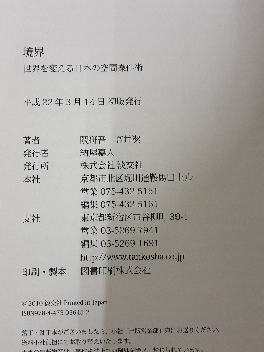 境界―世界を変える日本の空間操作術 淡交社 隈 研吾