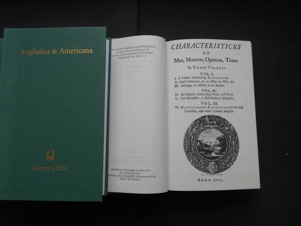 Anglistica & Americana 3vols Shaftesbury Characteristics