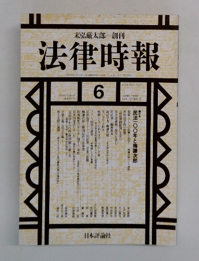 法律時報 6月号 民法一〇〇年と梅謙次郎