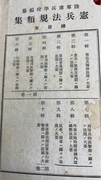 憲兵法規類集 第1・2卷 計2冊