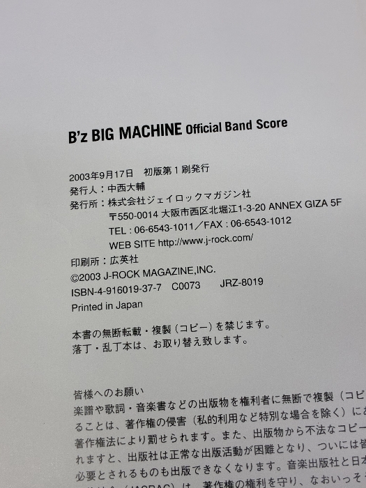 B'zバンドスコア「BIG MACHINE」 J‐ROCK MAGAZINE
