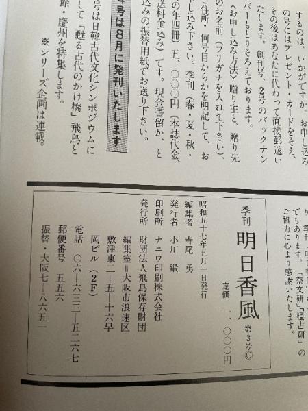 季刊 明日香風 3号 春 変貌する古代史 飛鳥の地下埋蔵物特集 飛鳥保存財団 1982 飛鳥京跡