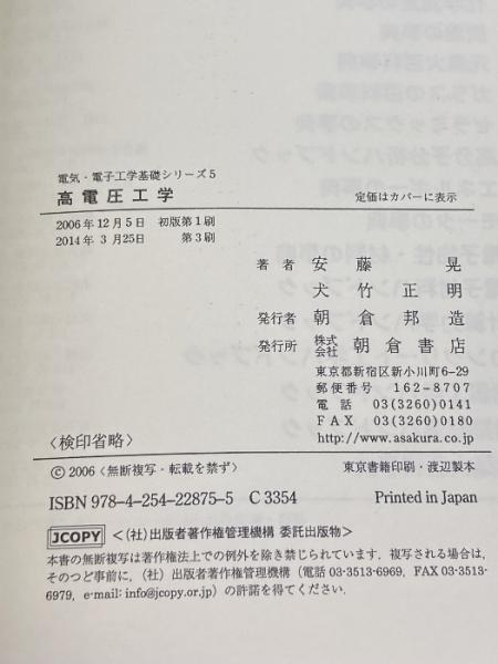 高電圧工学 (電気・電子工学基礎シリーズ 5) 朝倉書店 安藤 晃