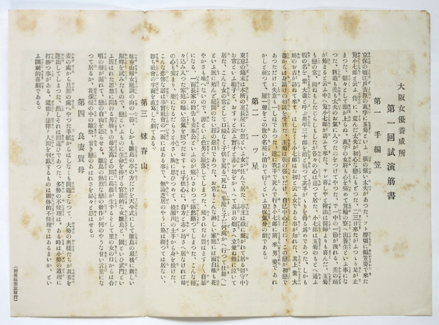 大阪女優養成所 第壹回試演筋書