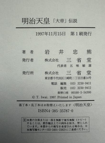 明治天皇 : 「大帝」伝説 <歴史と個性>