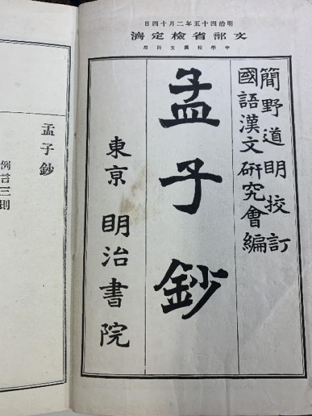 孟子鈔(全)発行:明治書院 明治45年2月訂正発行
