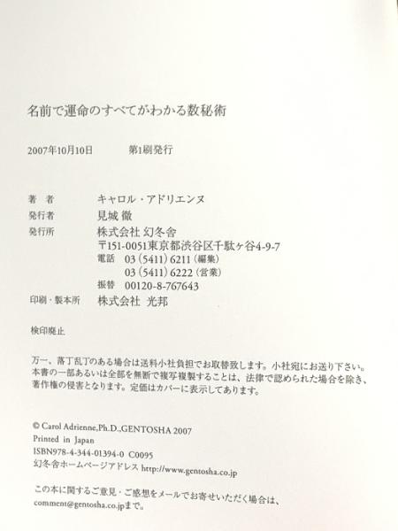 名前で運命のすべてがわかる数秘術 幻冬舎 キャロル アドリエンヌ