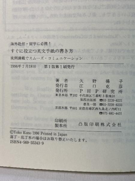 すぐに役立つ英文手紙の書き方: 海外赴任・留学に必携 実例満載でスムーズ・コミュニケーション PHP研究所 久野 揚子