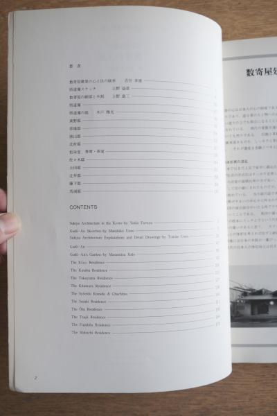古谷幸雄「数寄屋建築の心と技の継承」、上野益彦「悟道庵スケッチ」、上野富三「数寄屋の細部と木割」などを収録し、悟道庵、黄野邸、草場邸、徳山邸、北村邸、松栄堂香席・茶室、佐々木邸、太田邸、辻井邸、藤下邸、馬淵邸を掲載。現代数寄屋・和風住宅の意匠と施工を伝える建築資料。