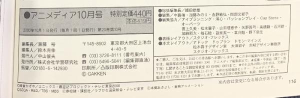 アニメディア 2000年10月 第20巻第10号 学習研究社